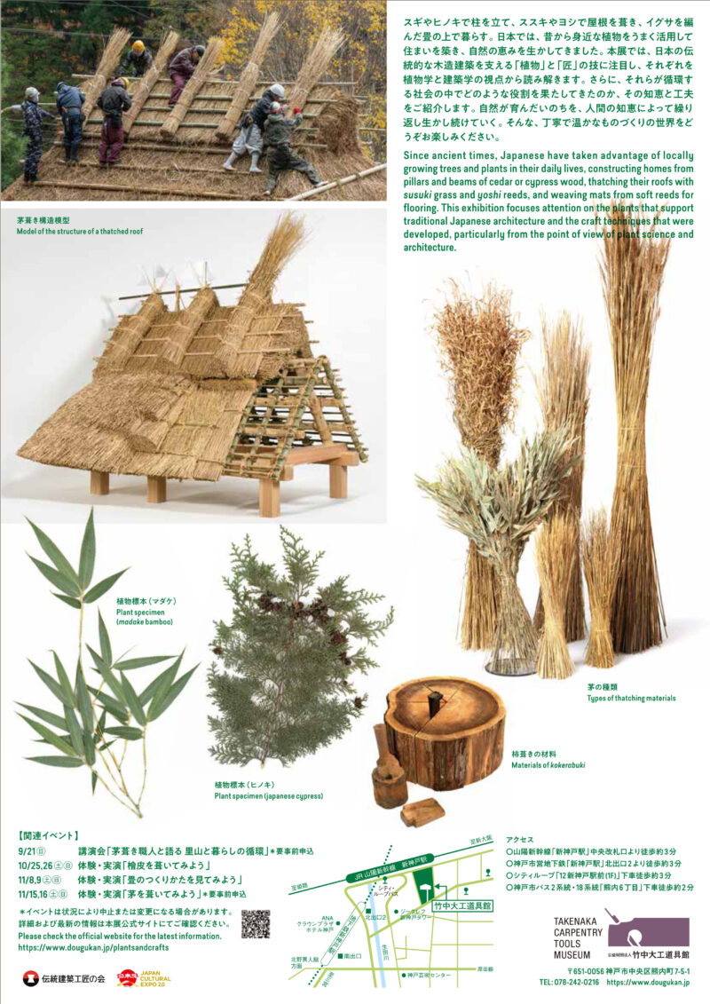 | 備考 | 特別協力 国立科学博物館 協 力 神宮司庁、日本伝統建築技術保存会、全国社寺等屋根工事技術保存会、 文化財畳技術保存会、日本茅葺き文化協会 補 助 令和7年度日本博事業2.0事業(補助型) (独立行政法人日本芸術文化振興会/文化庁) |