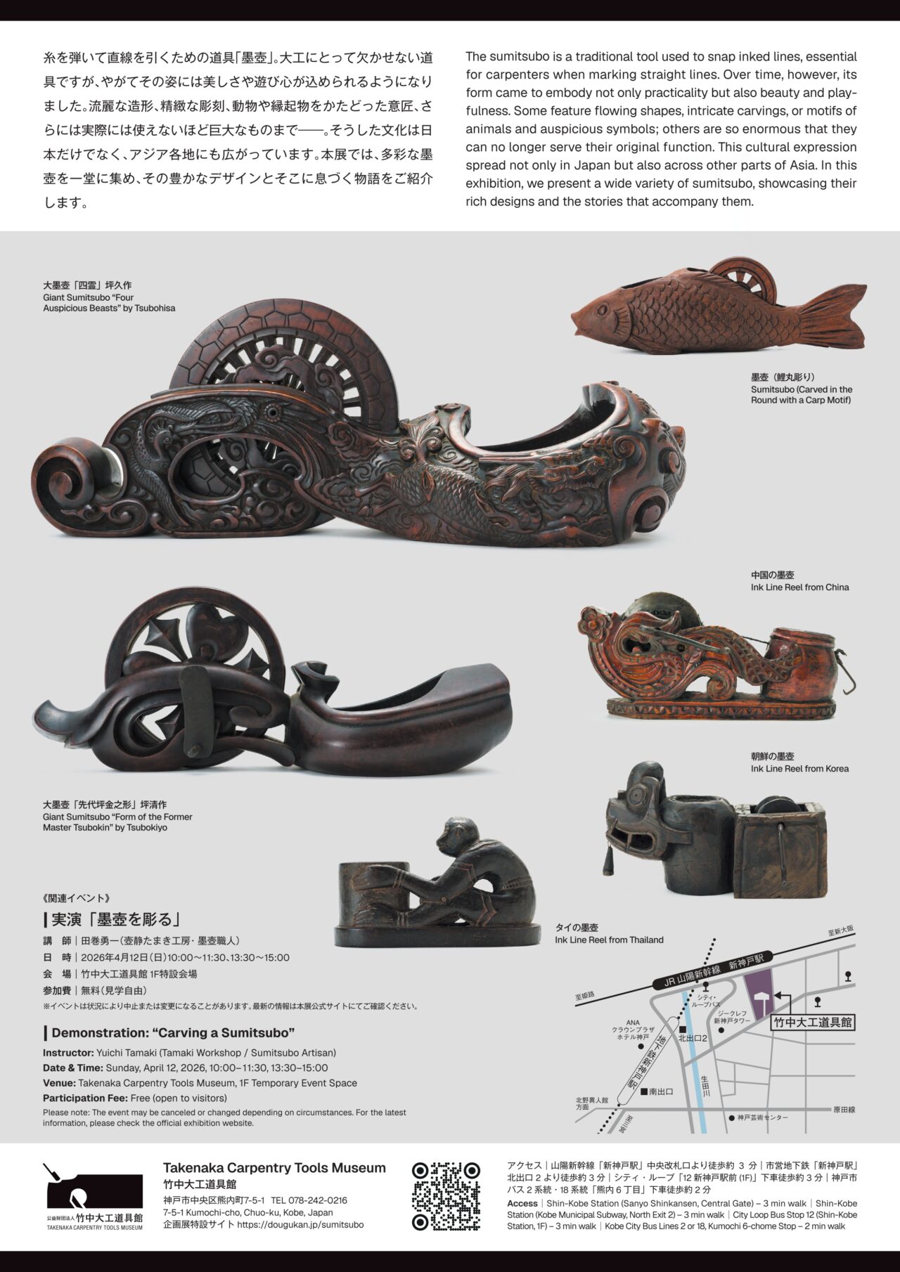 開催日時 2026年4月12(日) 10:00~11:30・13:30~15:00のお好きな時間 開催場所 竹中大工道具館 1階ホール 備考 講 師 田巻勇一(壺静たまき工房・墨壺職人)